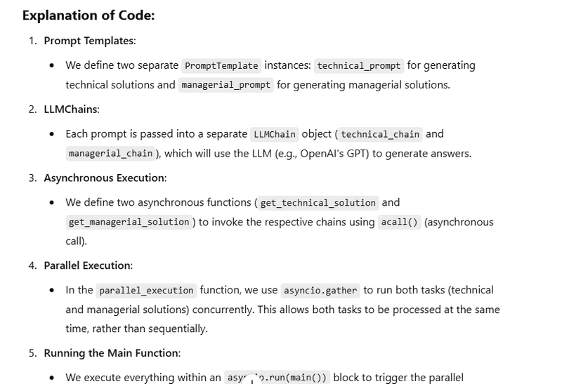 In this approach, we’ll combine multiple prompts into a single request, reducing redundant API calls. This works well when you have related tasks (e.g., generating both technical and managerial solutions for the same context).