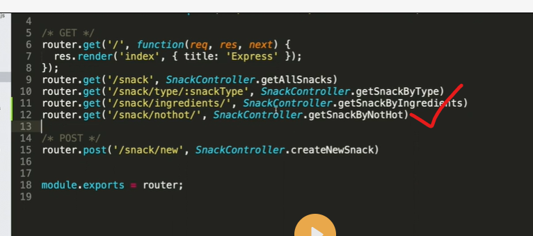 In the route file, we define a route to handle the request for users. It maps the getUsersByAges method in the controller to the corresponding route.