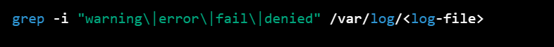 grep -i "warning\|error\|fail\|denied" /var/log/<log-file>