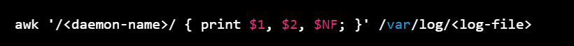 awk '/<daemon-name>/ { print $1, $2, $NF; }' /var/log/<log-file>