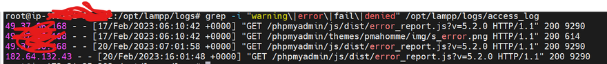sudo cat /opt/lampp/logs/access_log | grep "warning\|error\|fail\|denied"