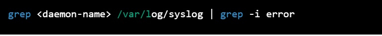 Replace with the name of the daemon that you want to monitor. This command will search the /var/log/syslog file for lines that contain the specified daemon name, and then filter the output to only show lines that contain the word "error" (case-insensitive).