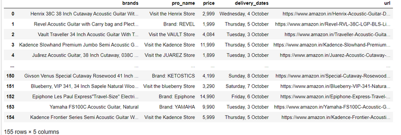 df= pd.DataFrame({'brands':brands,'pro_name':products_name,'price':prices,'delivery_dates':delivery_dates,'url':url})