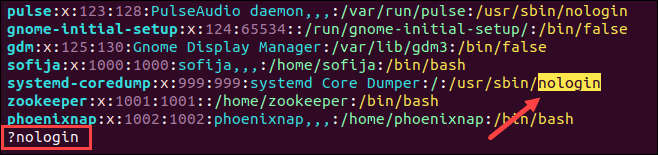 For example, to search for all instances of the pattern "nologin", you would:
