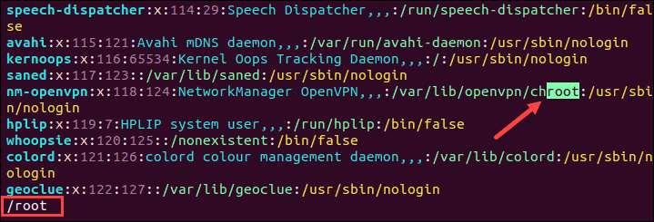 vim +/root /etc/passwd