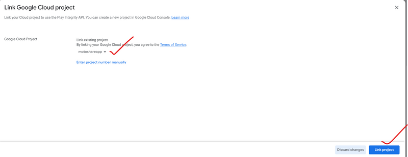 By enabling Play Integrity API responses in the Google Play Console, you will gain access to additional configuration options, testing features, and API reporting. This option is only available to apps distributed on Google Play. Navigate to Release > App integrity. Under Play Integrity API select Link a Cloud project. Choose the Cloud project you want to link to your app and this will enable Play Integrity API responses. You can now integrate the Play Integrity API into your app.