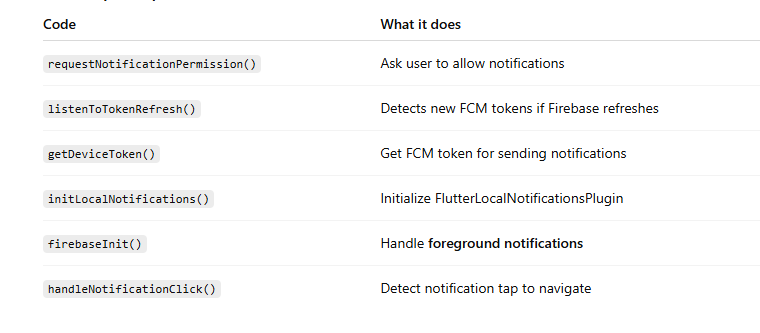 firebaseInit() — Listen for Foreground Notifications