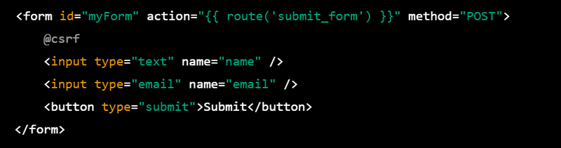 <form id="myForm" action="{{ route('submit_form') }}" method="POST">