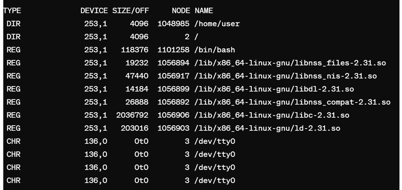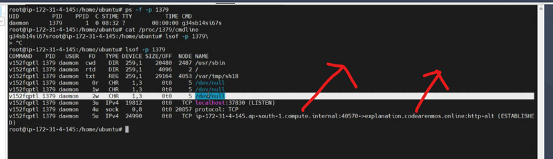 By running lsof with the PID of the suspicious process, you'll see a list of files and network connections opened by that process. Look for any suspicious network connections, such as connections to unknown or unauthorized hosts.