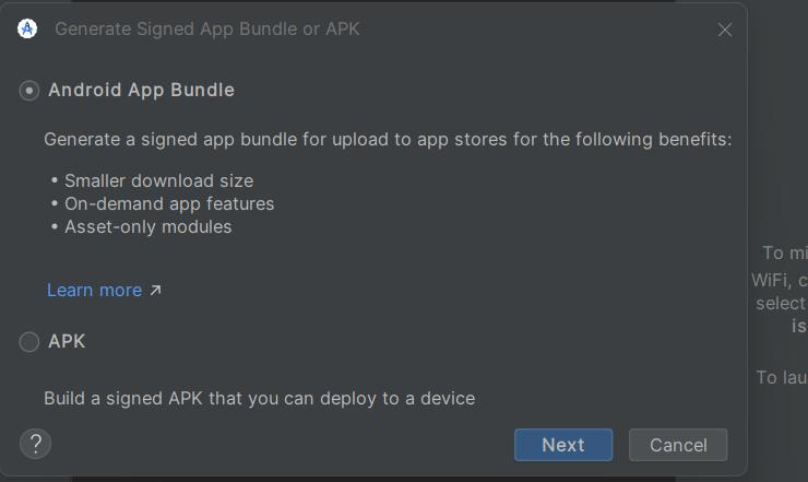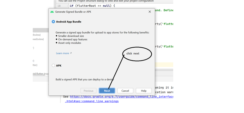 4.then go to Build-->Generate signed app bundle apk