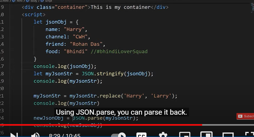 Example 3: This example uses the reviver function to parse a string and return the JavaScript object.