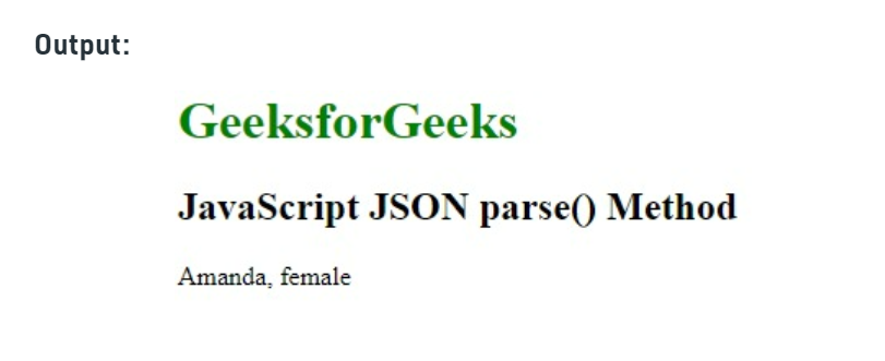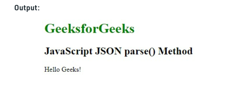 var obj = JSON.parse('{"var1":"Geeks","var2":"forGeeks!"}');