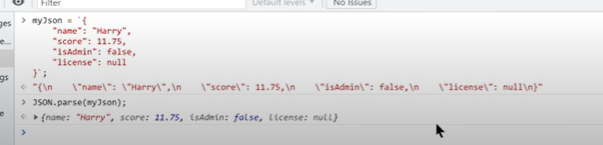 var obj = JSON.parse('{"var1":"Hello","var2":"Geeks!"}');
