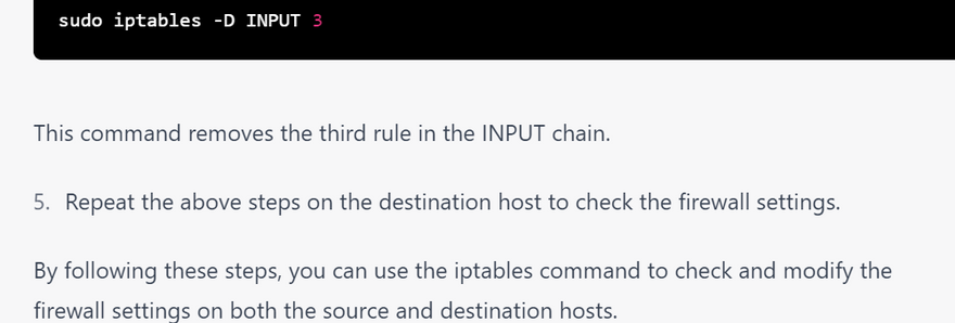 2.Type the following command to check the firewall settings on the source host: