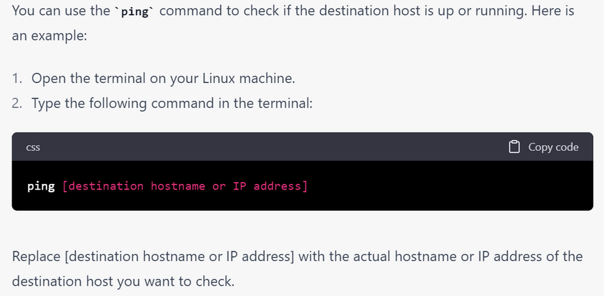 how to Check if the destination host is up or running using linux commands