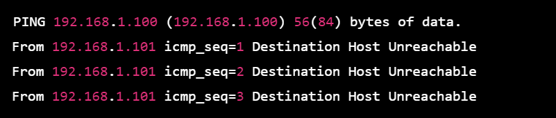 From 192.168.1.101 icmp_seq=3 Destination Host Unreachable