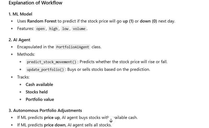 ML forecasts stock price → AI Agent makes autonomous portfolio adjustments