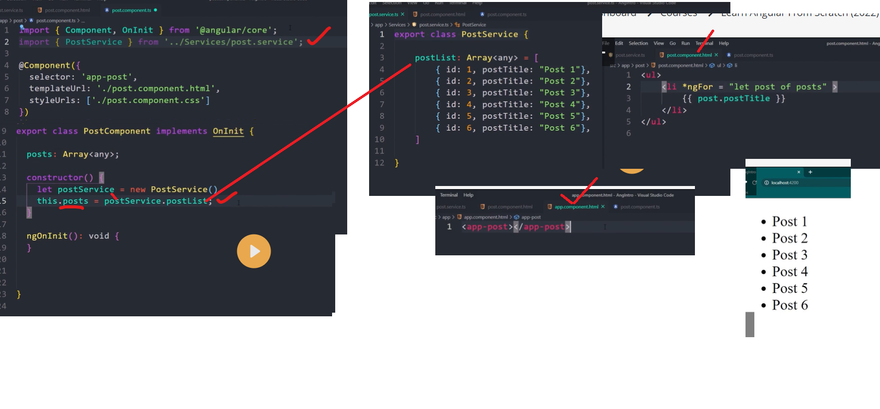 Dependency injection (DI) is the part of the Angular framework that provides components with access to services and other resources. Angular provides the ability for you to inject a service into a component to give that component access to the service.