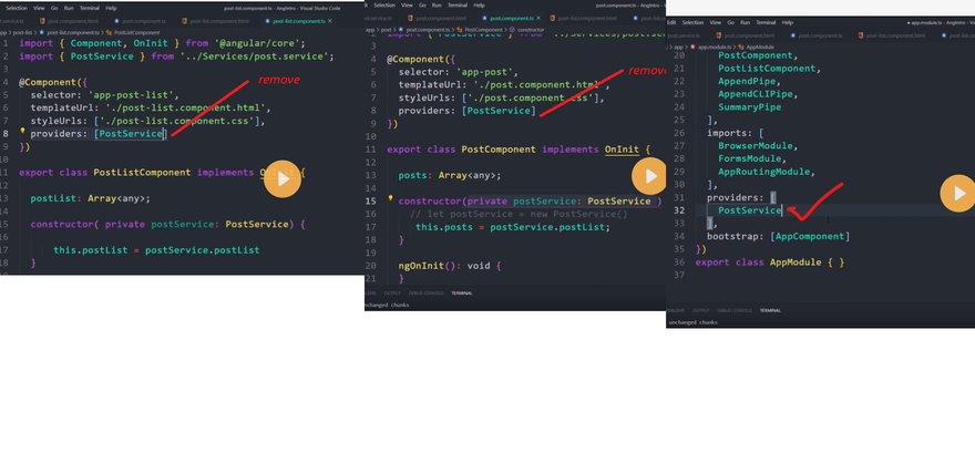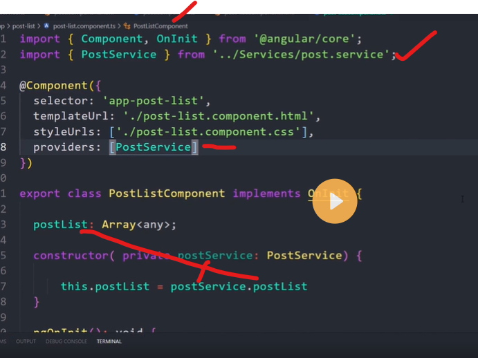 When you register a provider at the component level, you get a new instance of the service with each new instance of that component. At the component level, register a service provider in the providers property of the @Component() metadata.