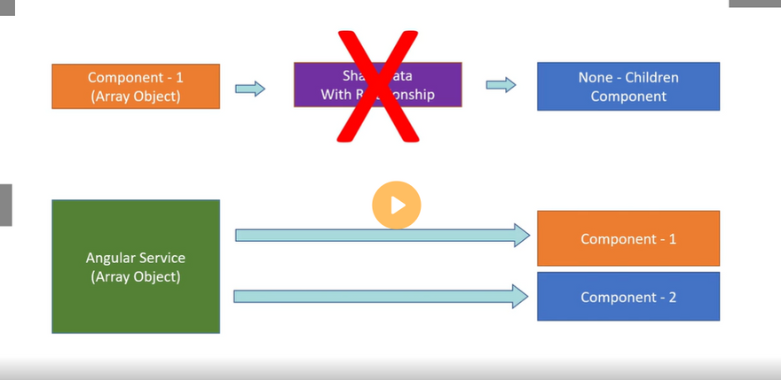 A component should use services for tasks that don't involve the view or application logic. Services are good for tasks such as fetching data from the server, validating user input, or logging directly to the console. By defining such processing tasks in an injectable service class, you make those tasks available to any component. You can also make your application more adaptable by injecting different providers of the same kind of service, as appropriate in different circumstances.