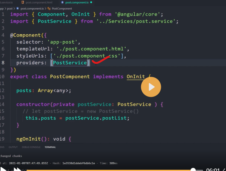 When all requested services have been resolved and returned, Angular can call the component's constructor with those services as arguments.