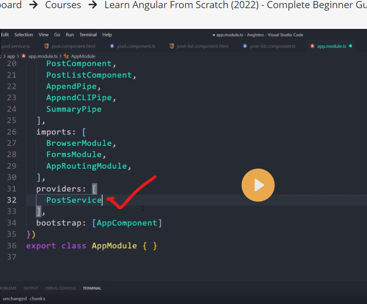 You must register at least one provider of any service you are going to use. The provider can be part of the service's own metadata, making that service available everywhere, or you can register providers with specific modules or components. You register providers in the metadata of the service (in the @Injectable() decorator), or in the @NgModule() or @Component() metadata