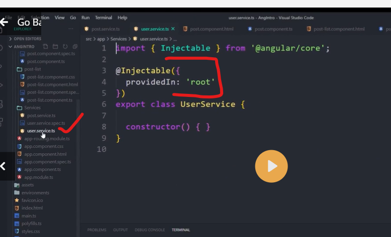 When you provide the service at the root level, Angular creates a single, shared instance of HeroService and injects it into any class that asks for it. Registering the provider in the @Injectable() metadata also allows Angular to optimize an app by removing the service from the compiled application if it isn't used, a process known as tree-shaking.