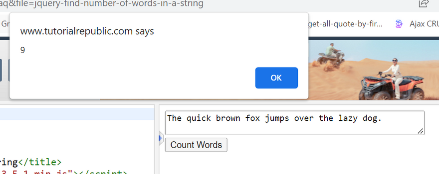 <title>jQuery Count Number of Words in a String</title>