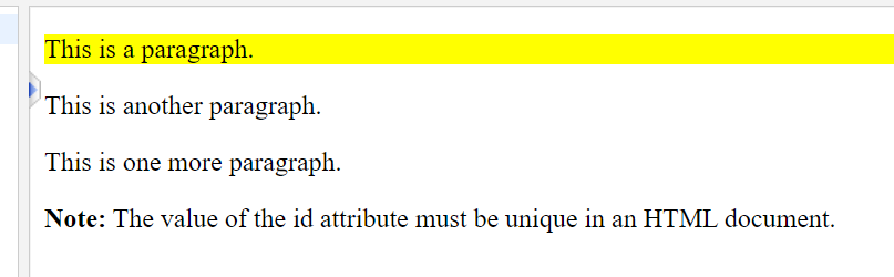 <p><strong>Note:</strong> The value of the id attribute must be unique in an HTML document.</p>