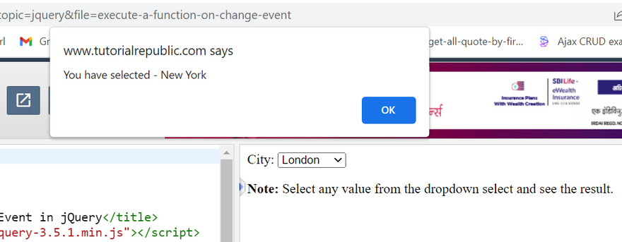 <p><strong>Note:</strong> Select any value from the dropdown select and see the result.</p>