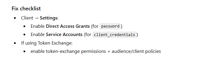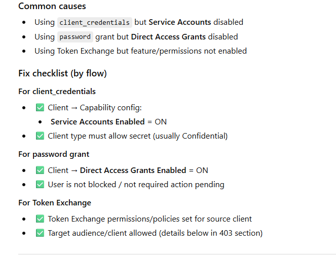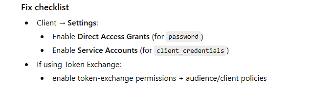 unauthorized_client (Client not allowed for this grant / flow)