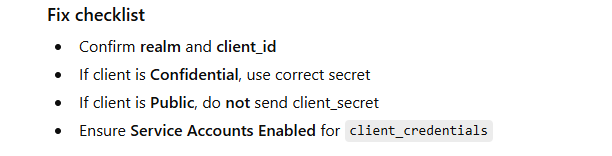 Keycloak can’t authenticate your client application. Usually: