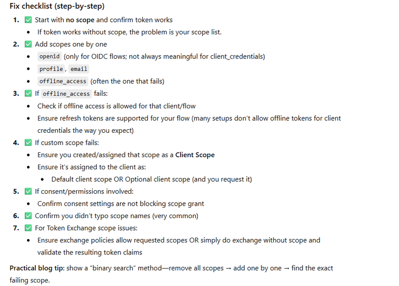 invalid_scope (Scopes not allowed)