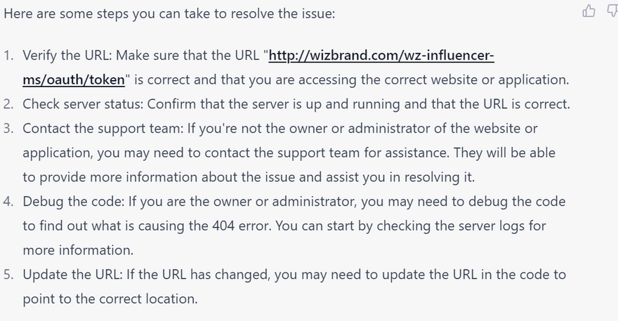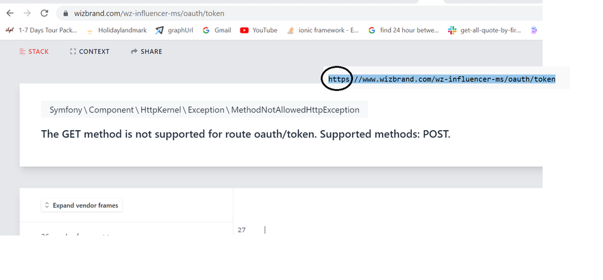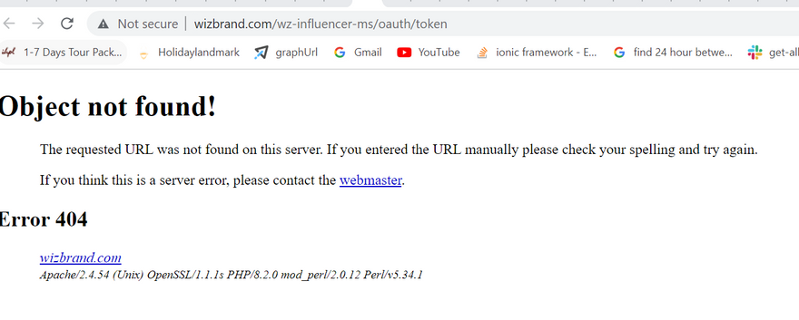 Client error: `POST http://wizbrand.com/wz-influencer-ms/oauth/token` resulted in a `404 Not Found` response
