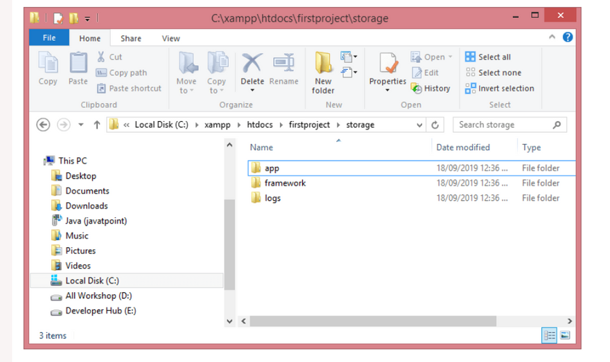 The storage directory contains those files which are required frequently when a Laravel project is running. It contains the following folders: