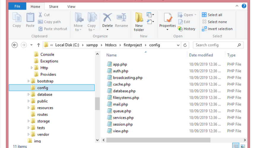 The config's directory contains the various configuration files required for the Laravel application. Various files are available inside the config's directory shown in the below screenshot, and each file performs their functionalities as per their names.