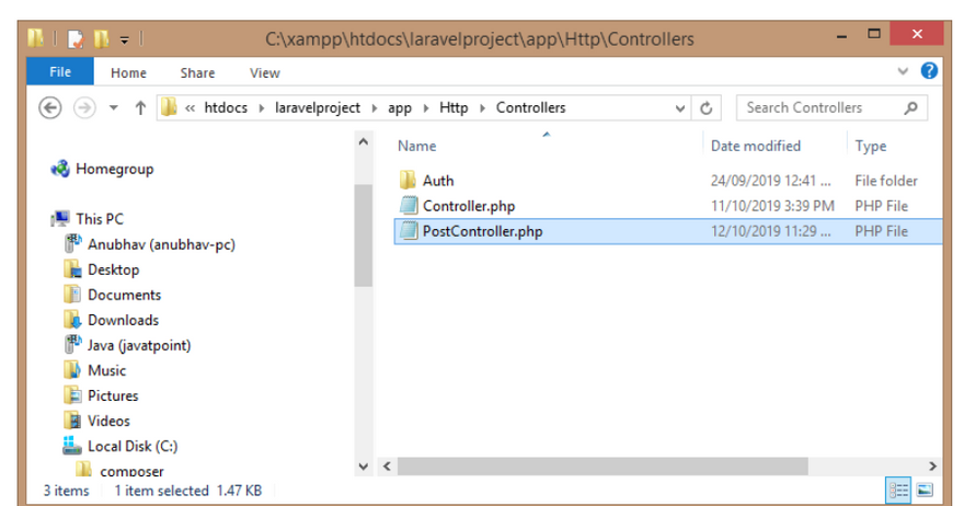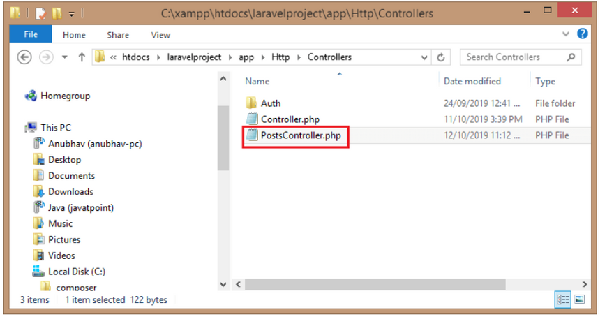 Now, move to your project to see whether the PostController file has been created or not. The path of the file would be: