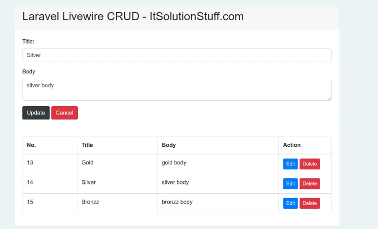 <h2>Laravel Livewire CRUD - ItSolutionStuff.com</h2>