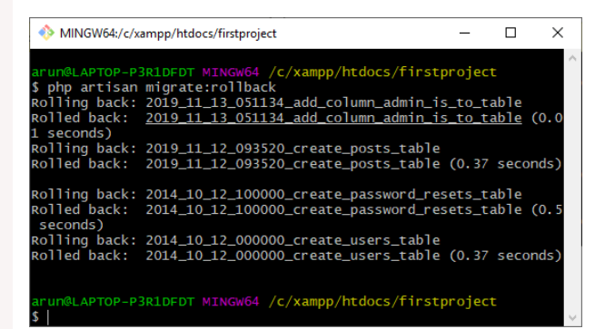 The above output shows that the refresh command rollbacks all the migrations and then re-migrate all the migrations.
