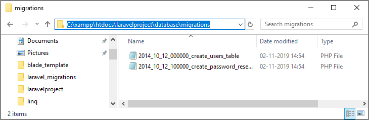 **Step 1: Move to the C:\xampp\htdocs\laravelproject\database\migrations directory.