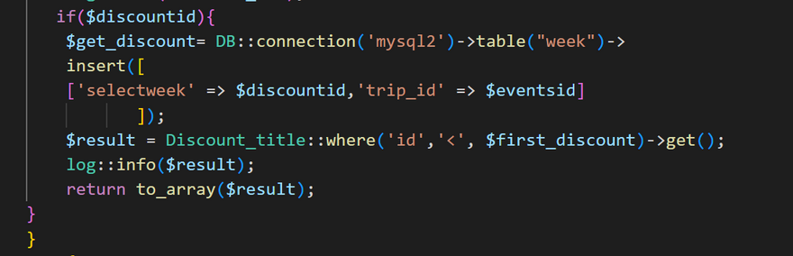 $result = Discountmsg::take(1)->get();
