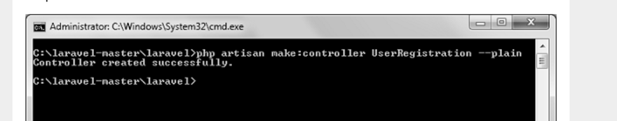 Step 2 − Execute the below command to create a UserRegistration controller.