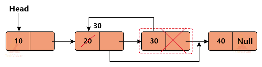 Deletion operation helps in deleting a node from the linked list.Display: