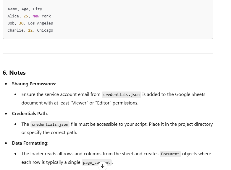loader = GoogleSheetsLoader(spreadsheet_id="your-spreadsheet-id", credentials_path="path/to/credentials.json")