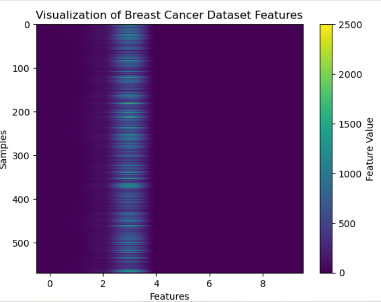 plt.title('Visualization of Breast Cancer Dataset Features')
