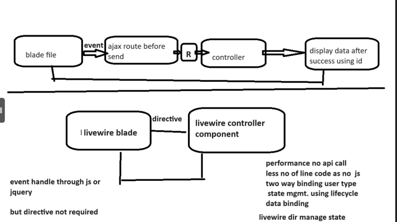 here are 14 differences between Laravel and Laravel Livewire along with examples: