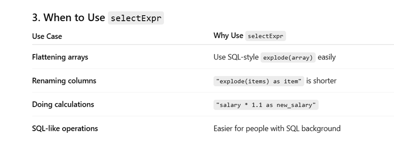 df.selectExpr("id", "info.details.name", "info.details.age").show()