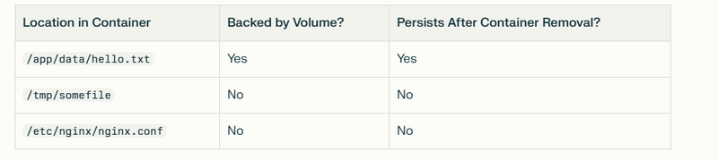 Data written to /app/data inside the container is stored in the mydata volume and persists even if the container is removed.