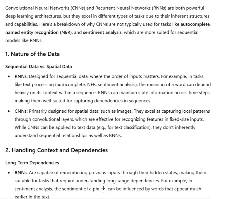 Flexibility in Input and Output Length: RNNs can handle input sequences of variable lengths and produce output sequences of variable lengths. This flexibility makes them suitable for tasks where the length of the input or output varies, such as machine translation or text generation.