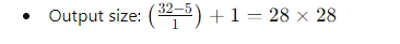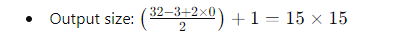 - Calculate output with dilation: Input size: 32x32 Filter size: 3x3 Padding: 1 Stride: 1 Dilation: 2 Solution: